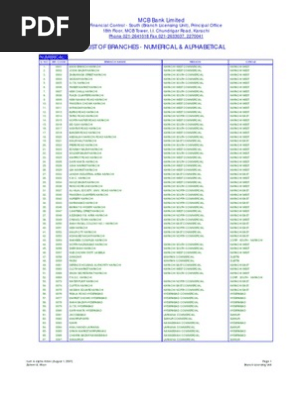 Mcb Branch List Karachi Lahore