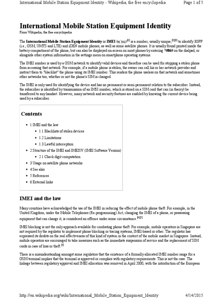 International Mobile Station Equipment Identity From Wikipedia