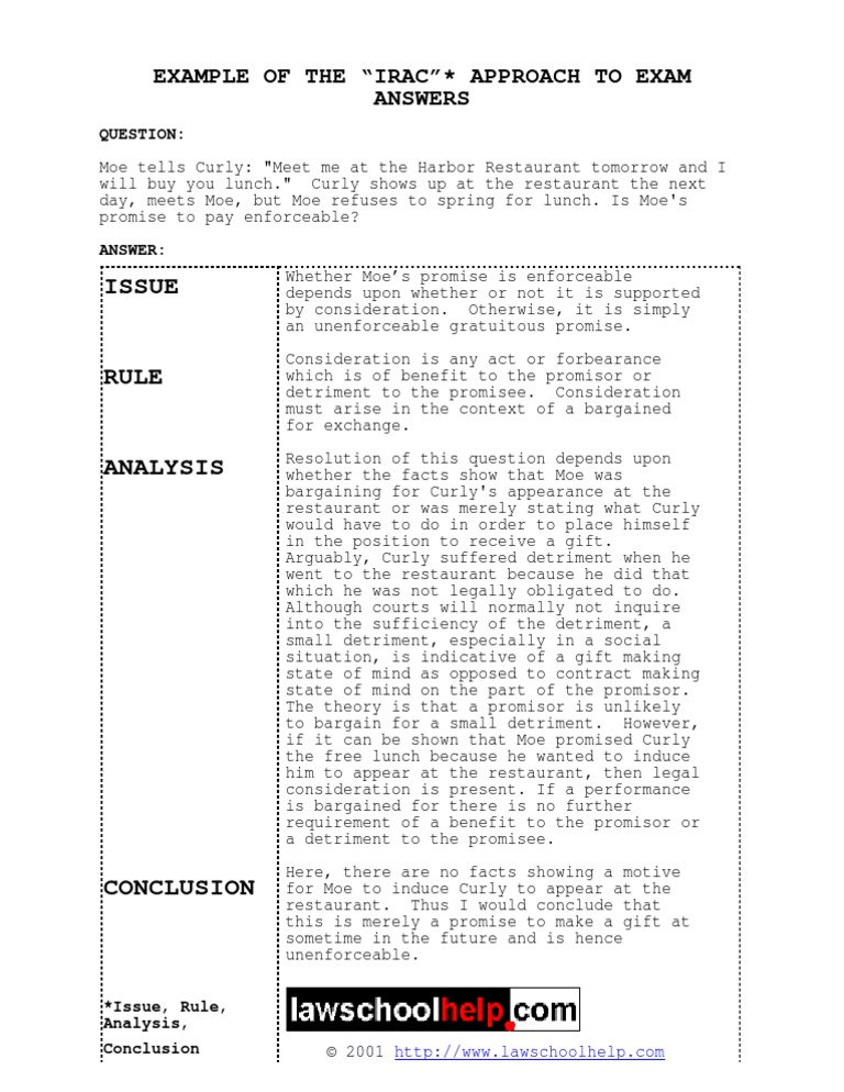 Example Of The Irac Approach To Exam Consideration Contract Law