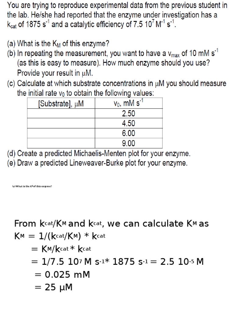 C What Is The Turnover Number Kcat For The Enzy Chegg Com