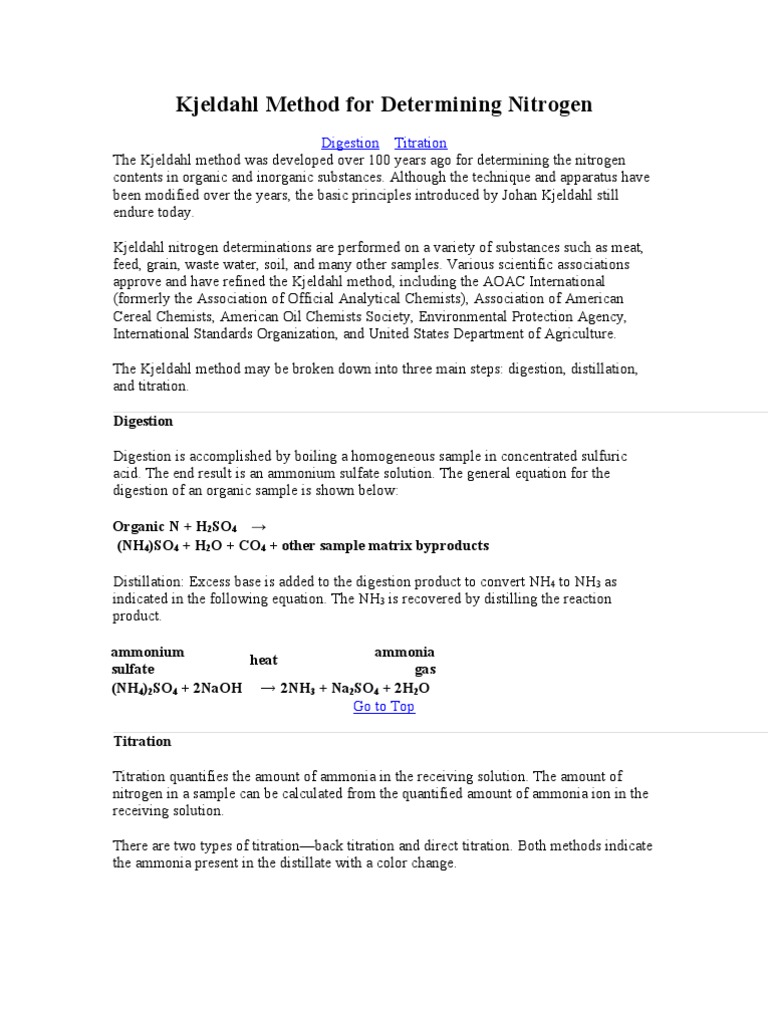 Kjeldahl Method For Determining Nitrogen Ammonium Ammonia