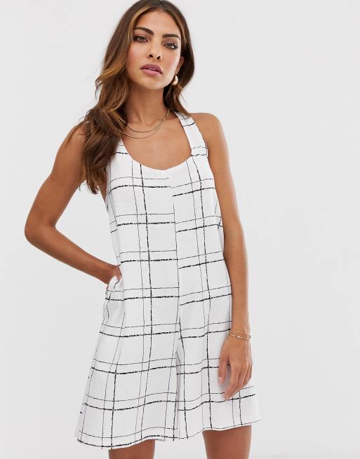 Asos Design Minimal Playsuit With Knot Back In Check Print Asos