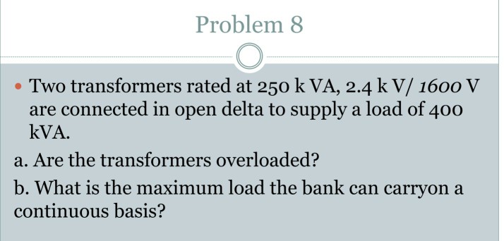 Solved Problem 8 Two Transformers Rated At 250 Kva 2 4 K