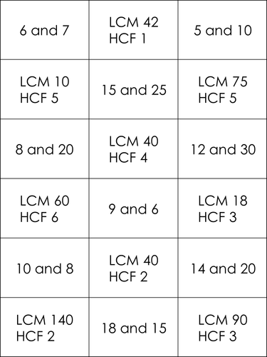 Ks3 Hcf And Lcm Matching Cards Teaching Resources
