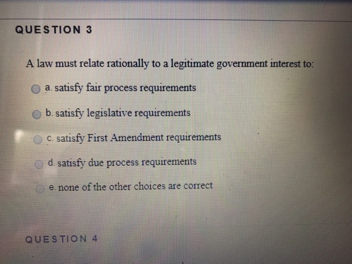 Solved Question 3 A Law Must Relate Rationally To A Legit Chegg Com