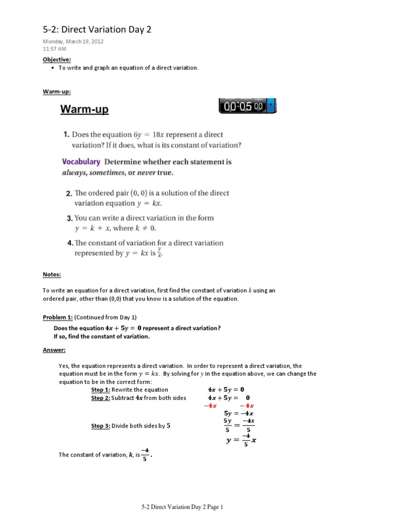 5 2 Direct Variation Day 2 Monday March 19 2012 11 57 Am